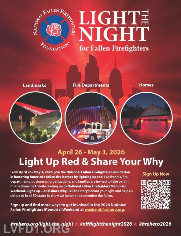 We invite you to join us by lighting your home, fire department, or community building in red during Memorial Weekend as a symbol of support and remembrance. |